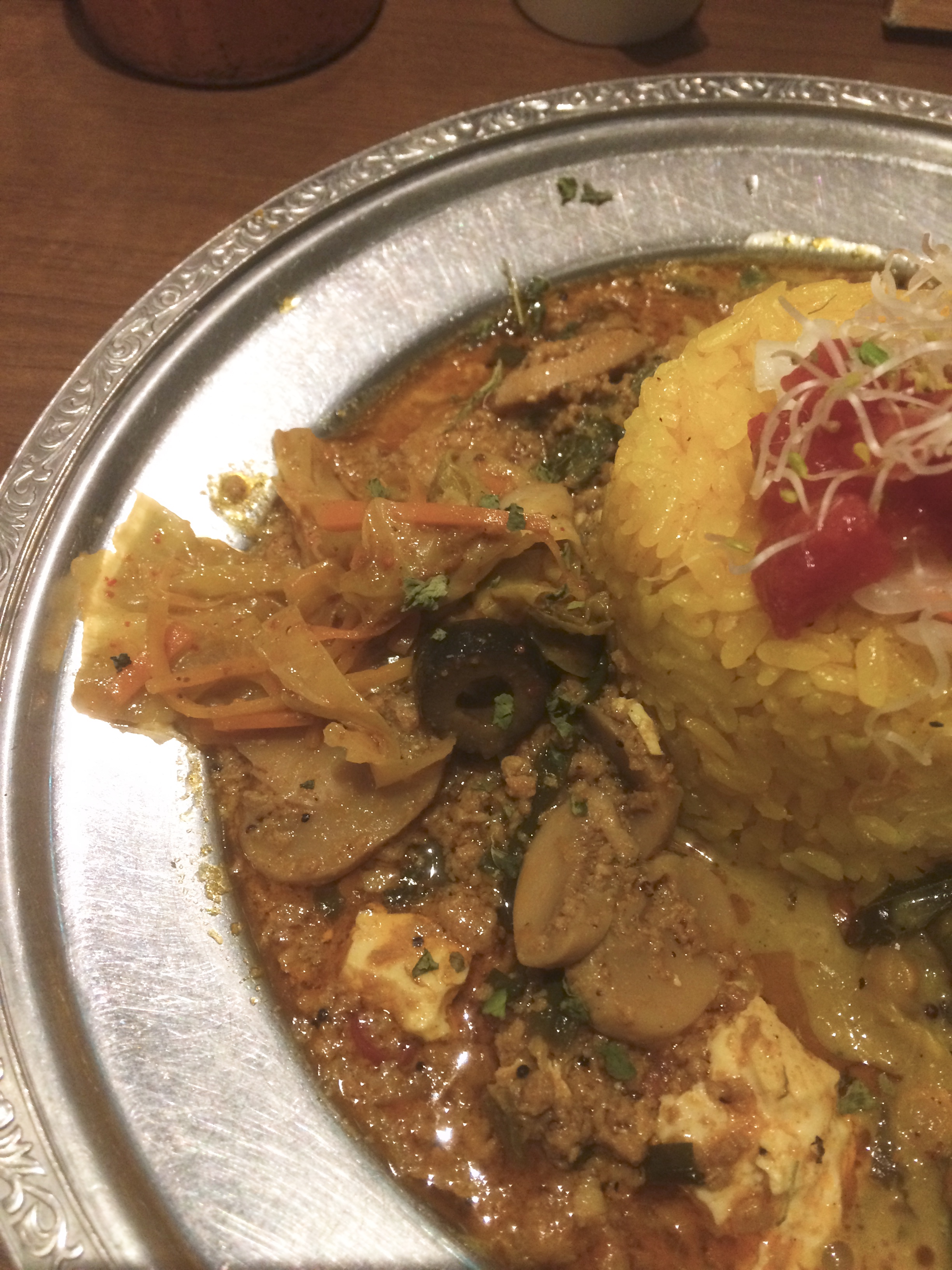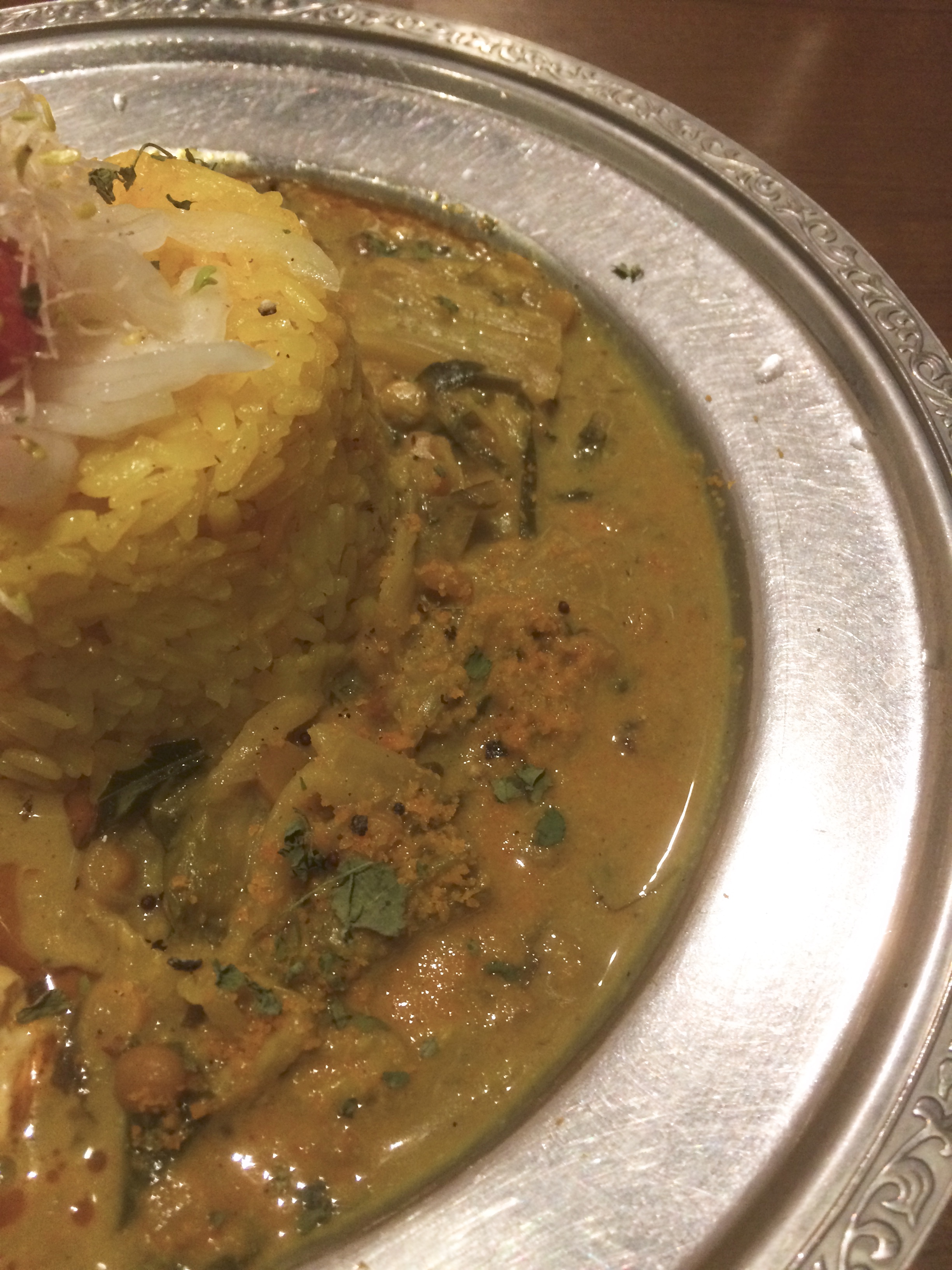 今日は大阪市内まで出たついでに、お昼は「旧ヤム鐵道」に行ってきました。以前に行ったのは。。。とりあえず久しぶりでした。 本当は北新地にある人気のカレー屋さんに行きたかったのですが、ランチタイムに入っていたので混んでいるだろうと思いまた次の機会に。こちの店も人気店でしかもルクアの中なので混んでいるのは承知だったのですが。案の定10人ほど並んでいましたが。 今日は月替わり4種類の中から、AとDのあいがけ。 ほどよいスパイシーさがいいですね。