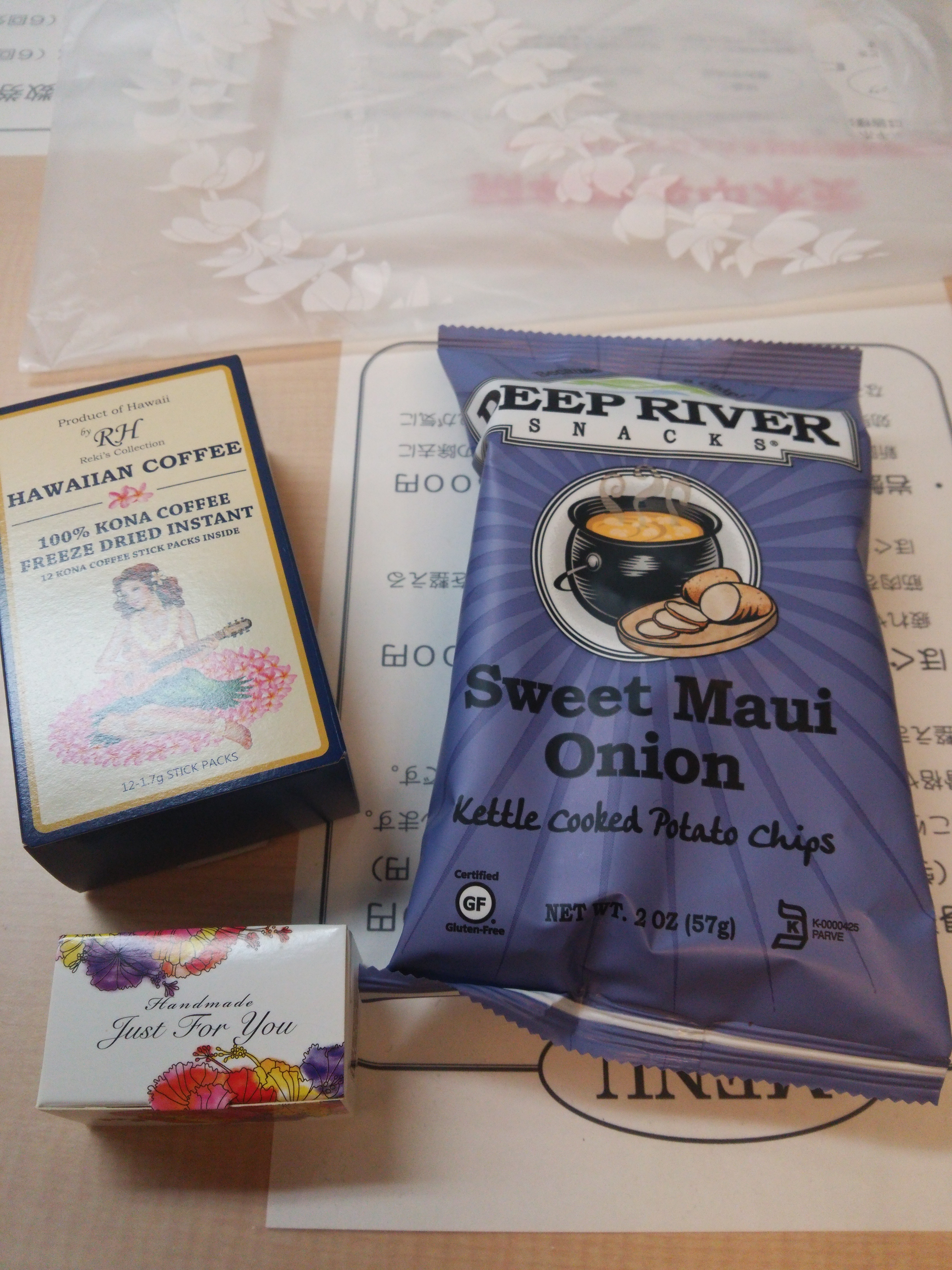 お客様からハワイのお土産を頂きました。お嬢さんの結婚式でハワイに行かれていたそうです。 コナコーヒーは名前は知っていましたが初めて飲みました。苦味も少なく非常に飲みやすく美味しいです。ブルーマウンテンと並んで最高級の豆と称されているだけのことはありますね。何だか飲むのがもったいない気持ちになります。残りもじっくりと味わって頂きたいと思います。ありがとうございました。