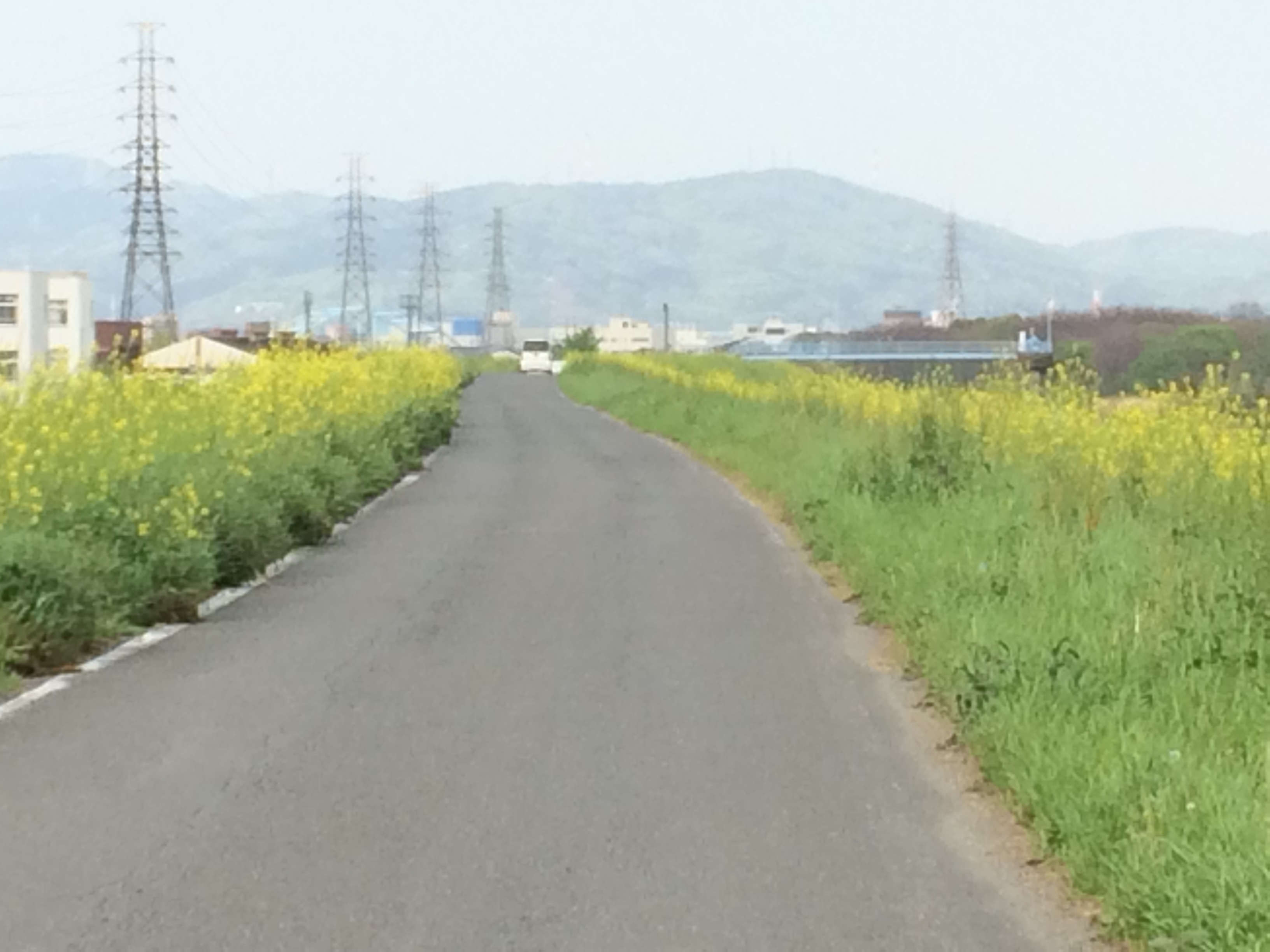 先週行った背割堤は菜の花が咲いていて、黄色がかっていて綺麗でした。