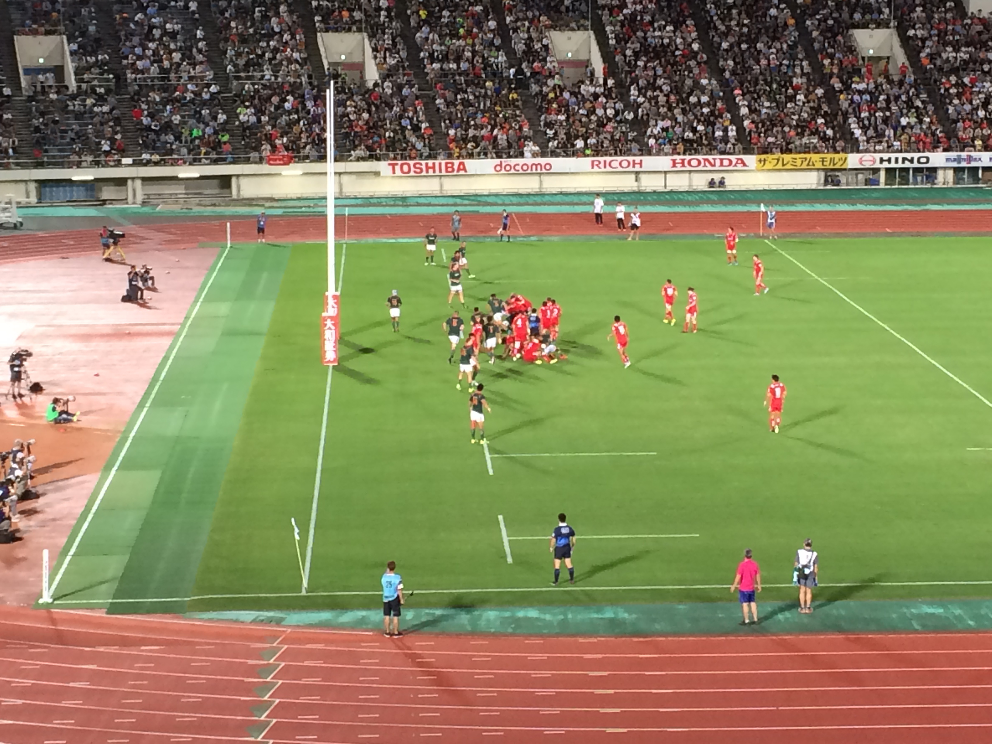 万博記念競技場でトップリーグのトヨタ自動車vs神戸製鋼の試合。