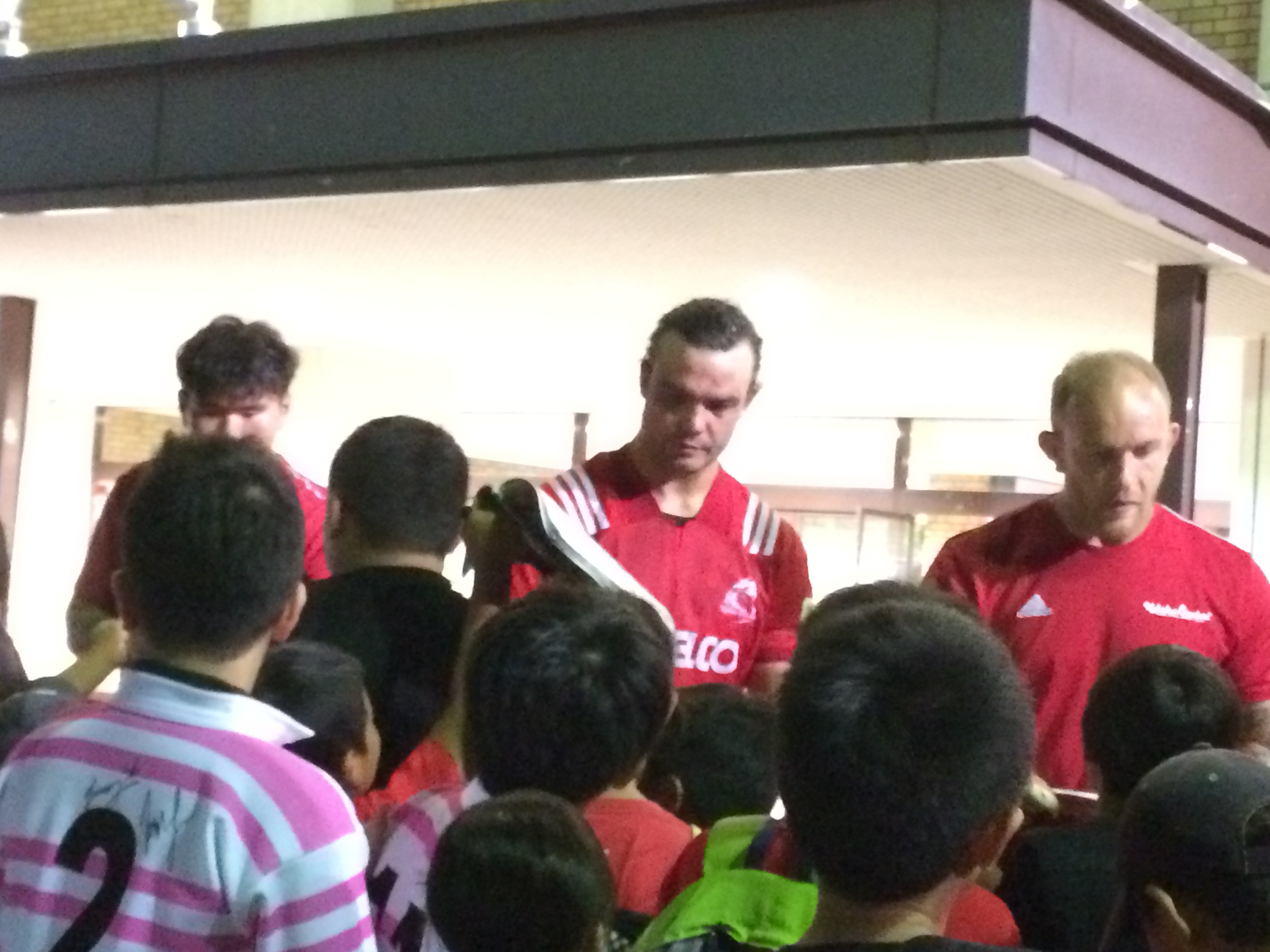 試合後には両チームから数人の選手が競技場の外に出てきて子供達へのサイン会。