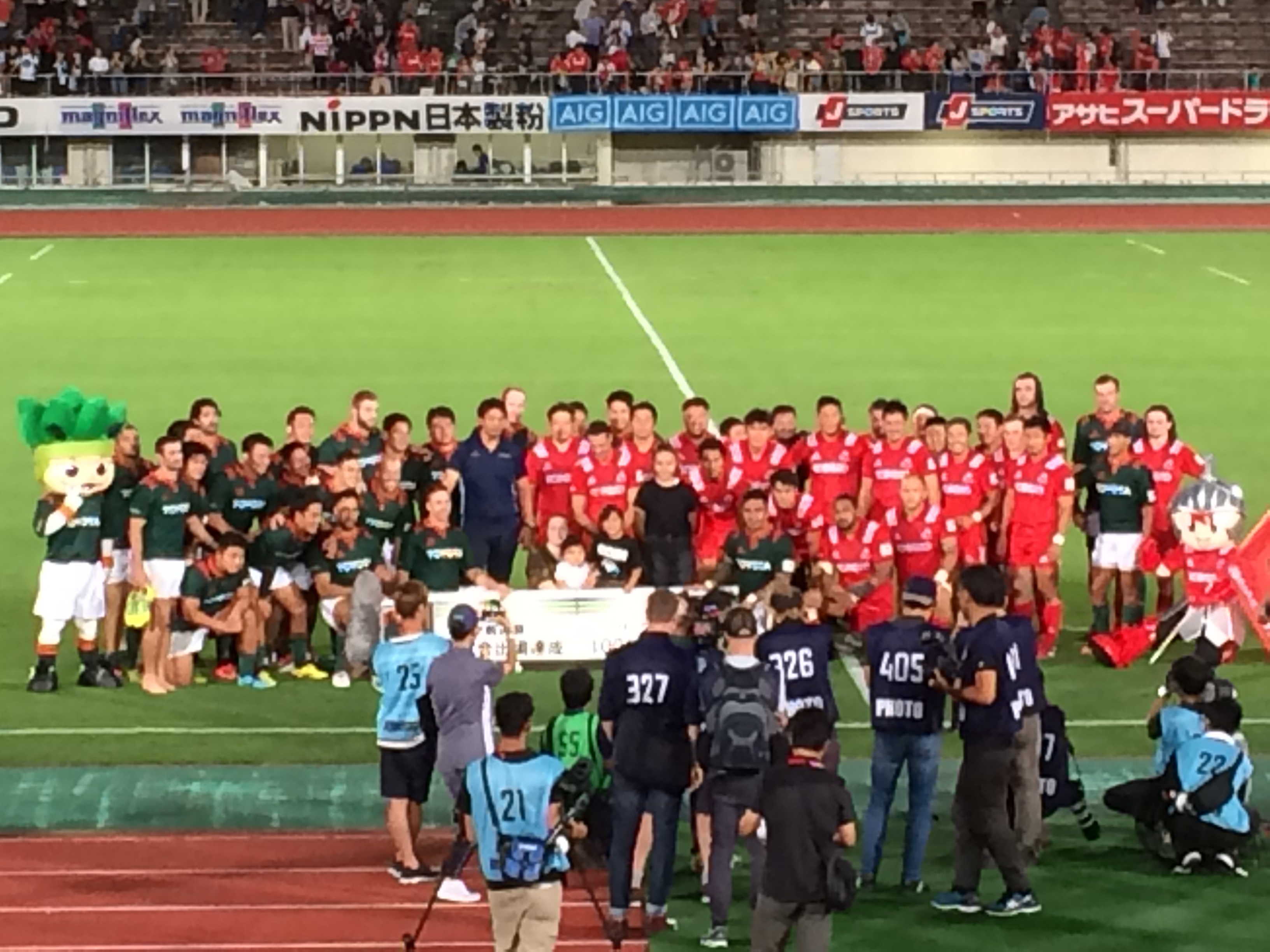 その後は両チームの選手入り乱れての写真撮影。