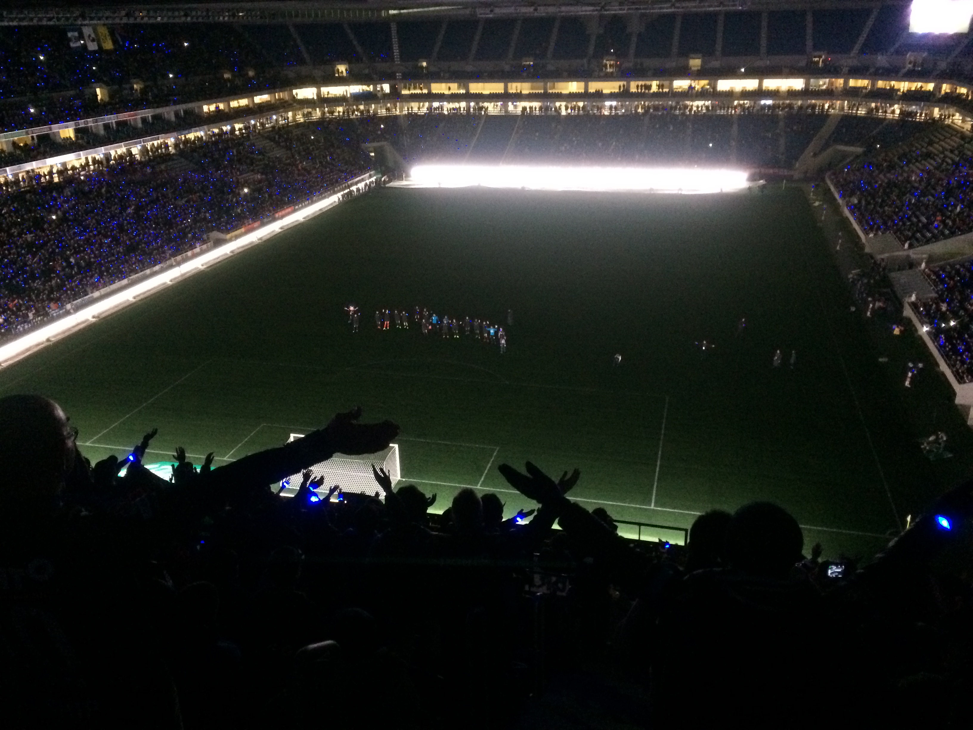 試合後には照明を消して、LEDブレスを使ってのガンバクラップ。