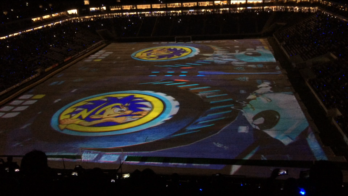 90m×45mのピッチに映し出された8分間の映像は、す~ごい迫力で綺麗でした。