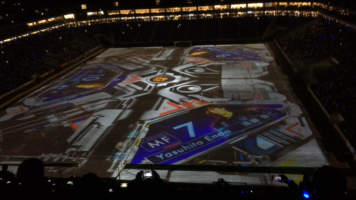 そして、今日はJリーグとしては初の試みの、サッカースタジアムのピッチを使ってのプロジェクションマッピング。